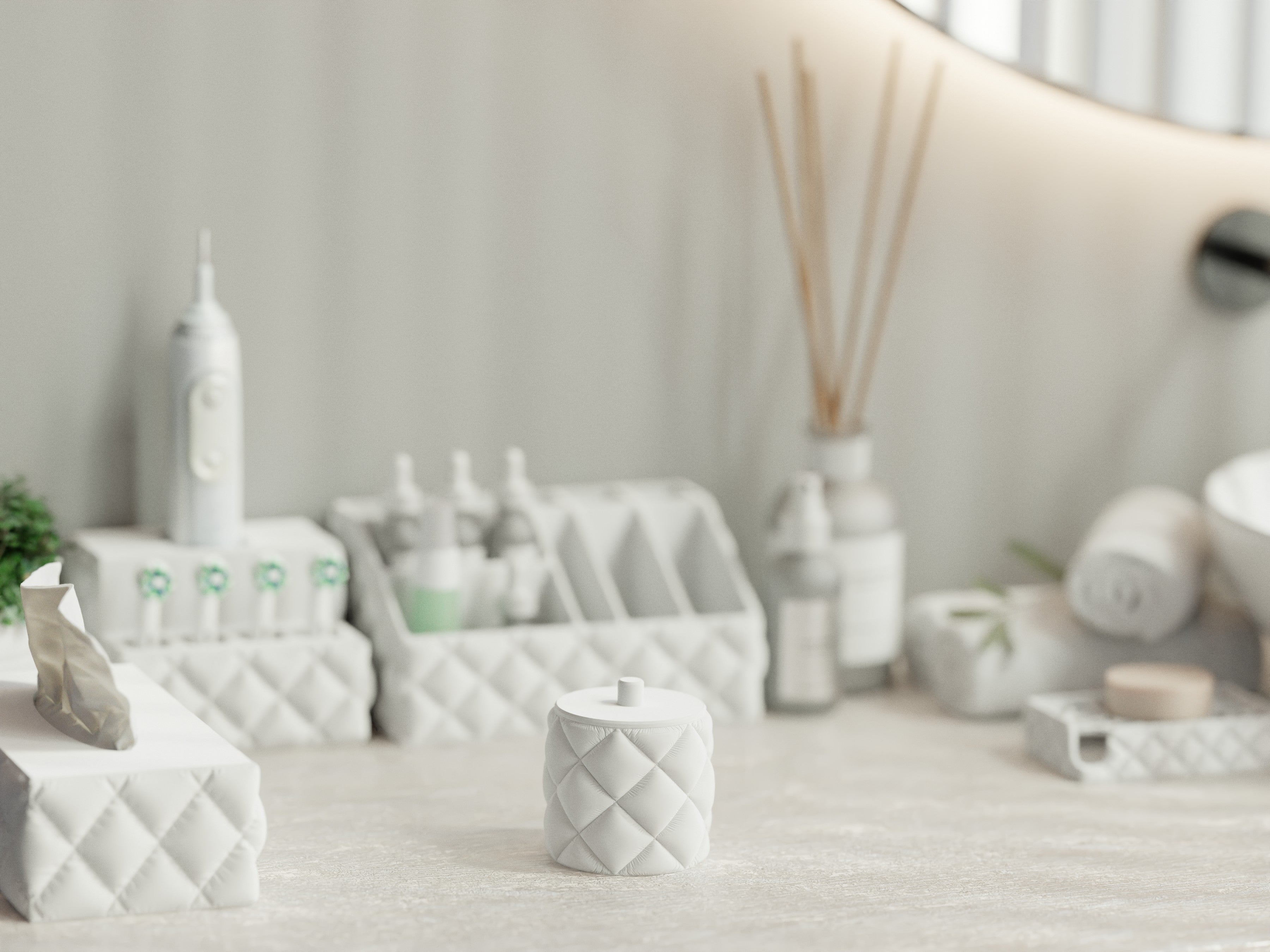 Ob auf dem Waschtisch, im Regal oder neben dem Spiegel – der Spender ist mehr als nur ein Aufbewahrungsbehälter. Er wird zum stilvollen Accessoire, das alltägliche Routinen aufwertet. Die sanft strukturierte Oberfläche im Kissen-Look fängt das Licht auf eine besondere Weise ein und vermittelt eine optische Weichheit, während das Produkt zugleich stabil und langlebig in der Hand liegt.