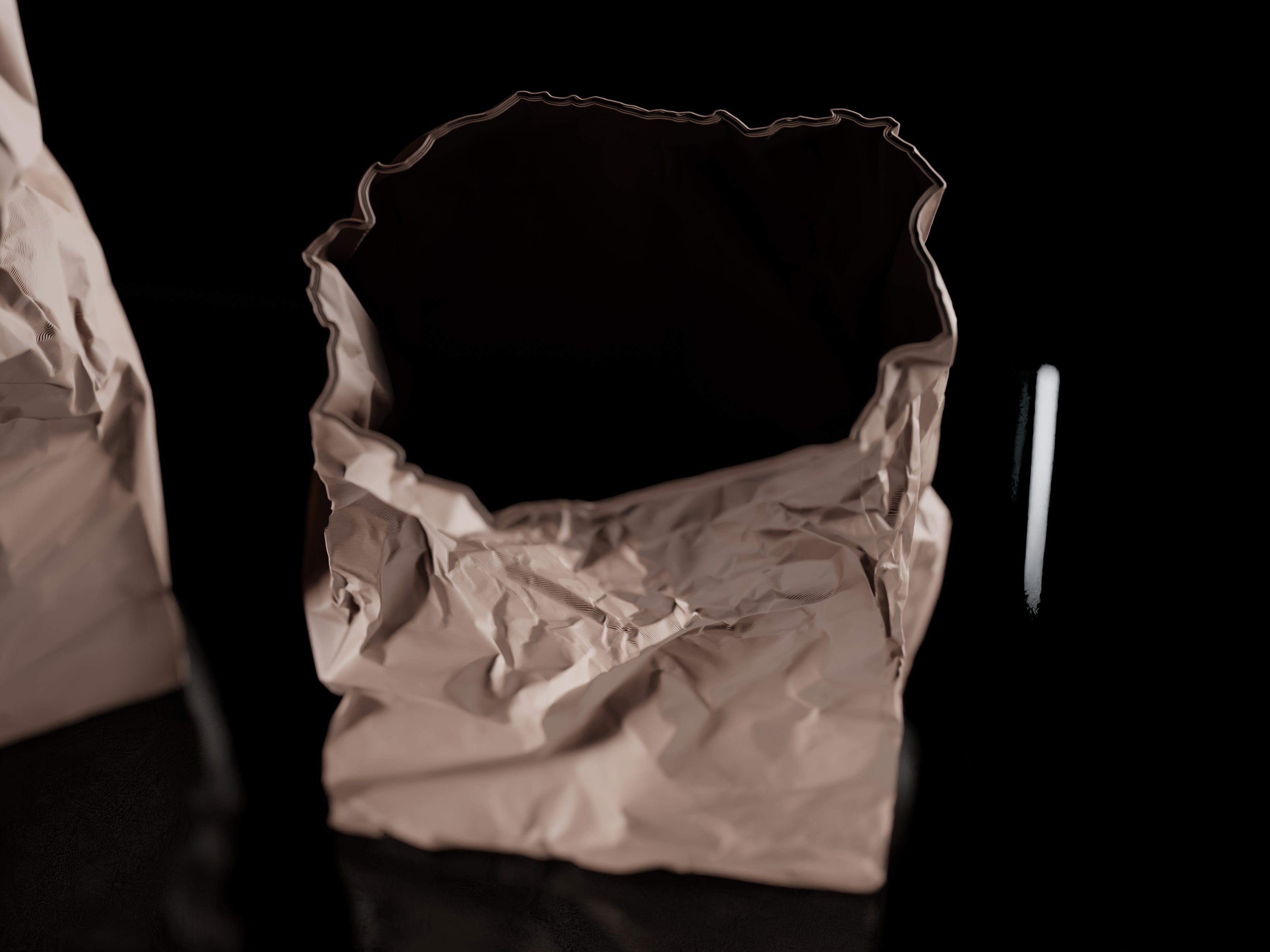 Kraftique erinnert auf den ersten Blick an eine zerknitterte Papiertüte, doch beim näheren Hinsehen offenbart sich ein skulpturales Objekt voller Tiefe und Charakter. Jede Falte und jede Unebenheit wurde im 3D Druck präzise nachempfunden, sodass eine lebendige, papierartige Oberfläche entsteht, die zugleich weich und strukturiert wirkt.
