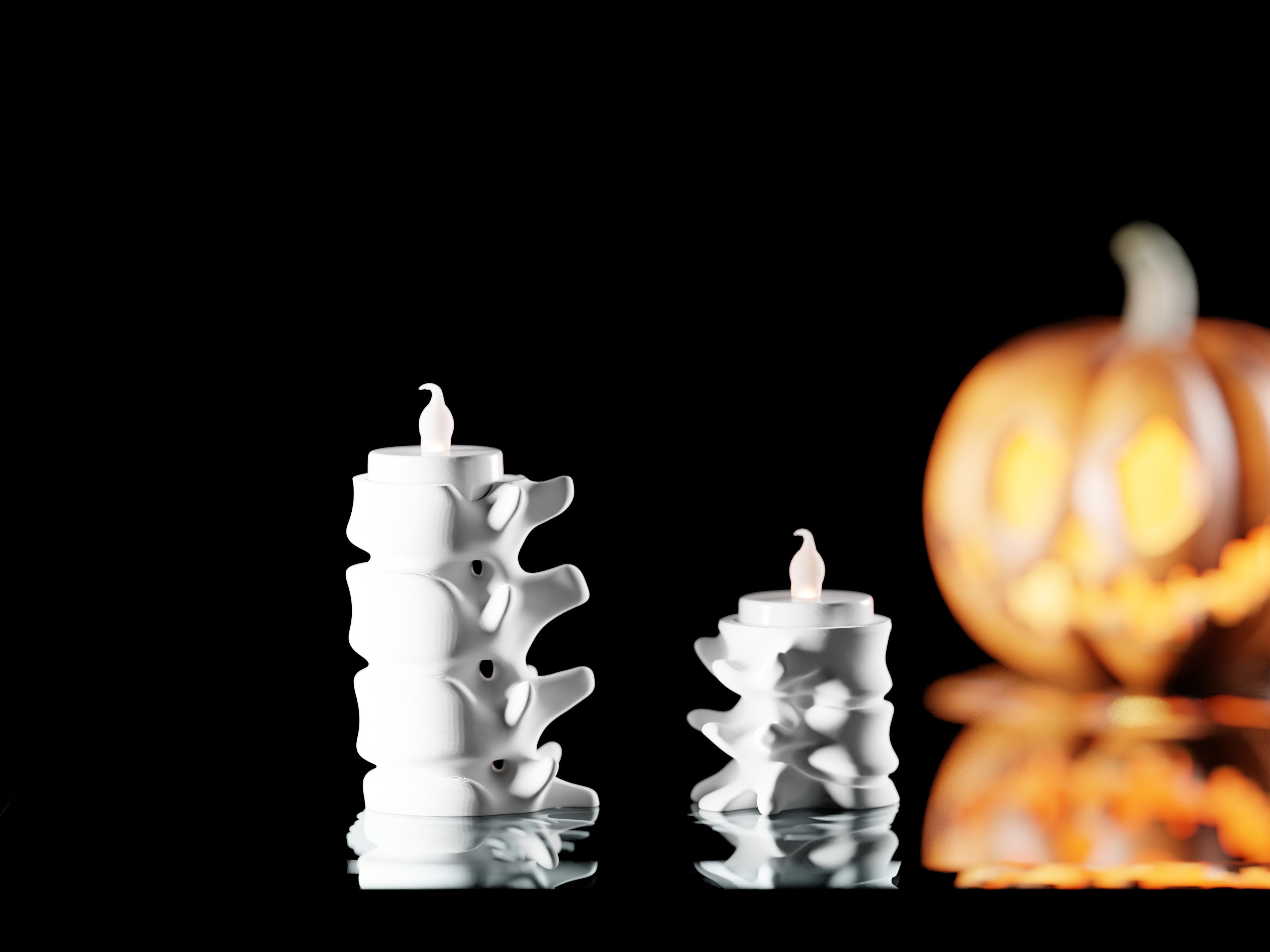 Vertebralis interpretiert die Ästhetik einer Wirbelsäule als skulpturales 2-er LED-Teelichthalter-Set – organisch, modern und leicht unheimlich zugleich. Die beiden Größen ergänzen sich harmonisch und erzeugen gemeinsam ein faszinierendes Spiel aus Licht und Schatten. Durch ihre außergewöhnliche Form fügen sich die Halter mühelos in moderne Wohnräume ein und schaffen zu Halloween wie auch im Alltag ein stimmungsvolles Ambiente.